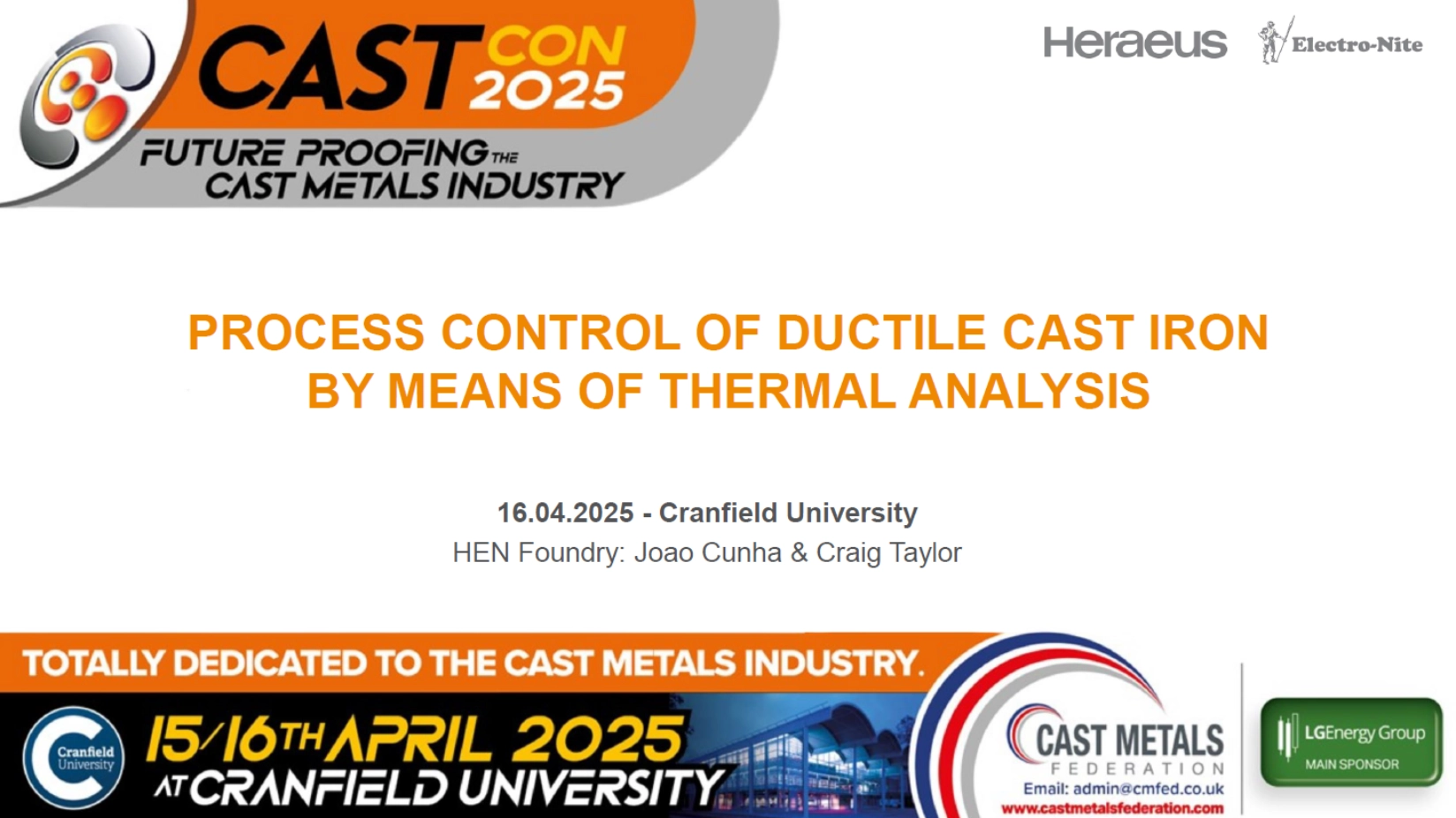 Held on April 15–16 at Cranfield University (UK), CASTCON 2025 brought together foundry professionals, suppliers, researchers, and industry leaders to explore the future of casting. Organized by the Cast Metals Federation, the event featured a packed agenda of technical presentations, expert panels, and exhibitions focused on innovation, sustainability, digital transformation, and process optimization in the cast metals sector.