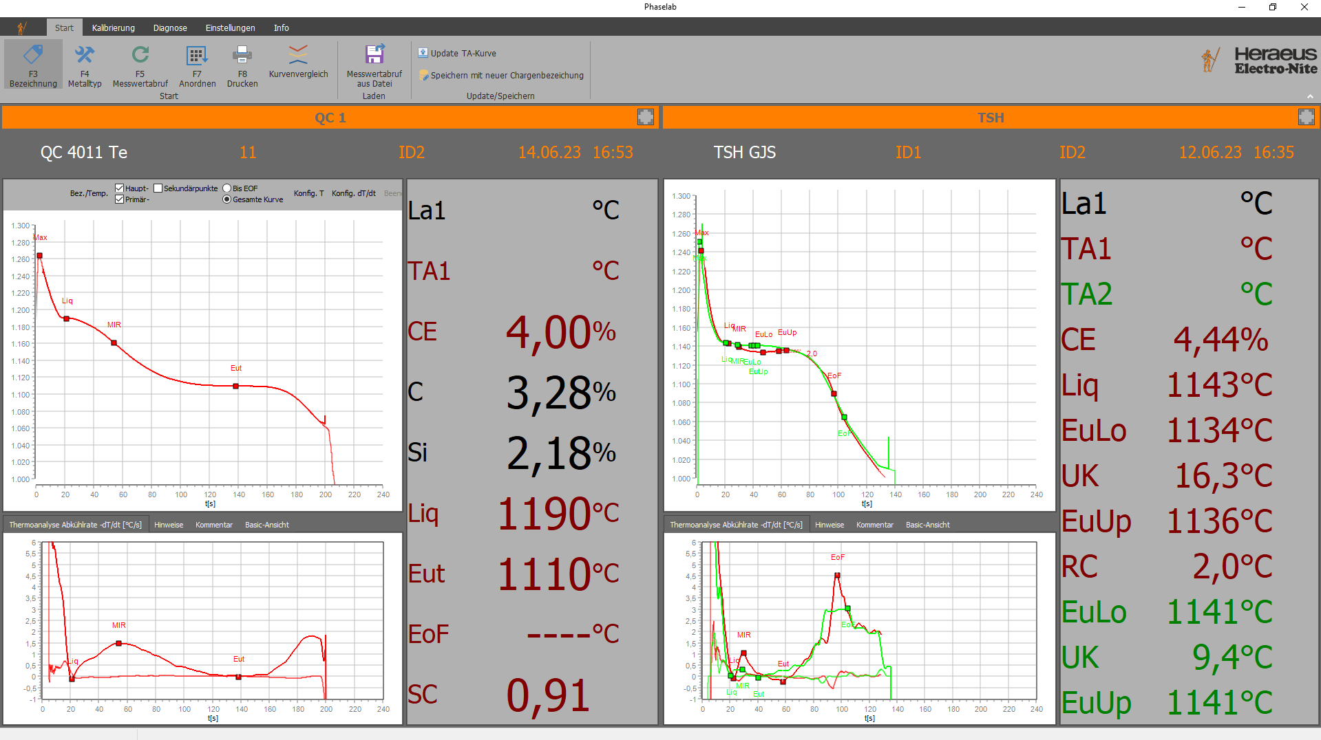 MeltControl Foundry 是一款用于熔体质量控制的数字分析和数据可视化工具。它可以记录并显示来自 Electro-Nite 测量仪器(QuiK-Lab® E、Digitemp® E、Digilance、Celox® Foundry 等)的实时测量曲线。对于支持传输曲线数据的仪器,MeltControl Foundry 还可以显示和存储曲线。测量曲线在测量过程中实时显示,以便可以轻松快速地检查熔体的质量。测量曲线也可以在数据库中的测量结果后显示,从而可以获得关于熔炼性能随时间的变化的总体概况。使用 MeltControl Foundry 系统,可以记录熔体的所有测量结果并将其纳入铸造过程控制系统(例如:Foundry Navigator)。
